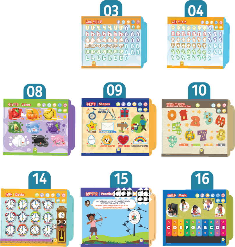 ልጆች ከእርሳስ አያያዝ ጀምሮ የማዳመጥ፣ የመናገር፣ የማንበብ እና የመፃፍ ችሎታቸውን በተቀናጀ መልኩ በምስል፣ በድምፅና በተግባር የሚለማመዱበት አስደናቂ ጥቅል