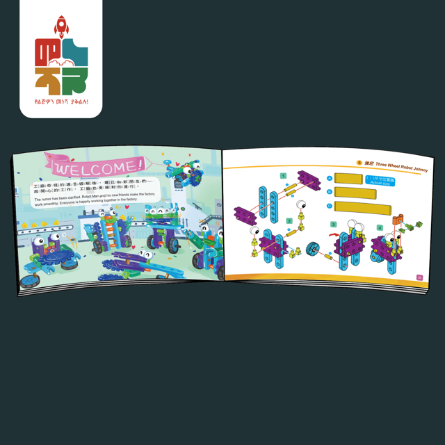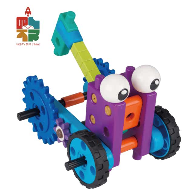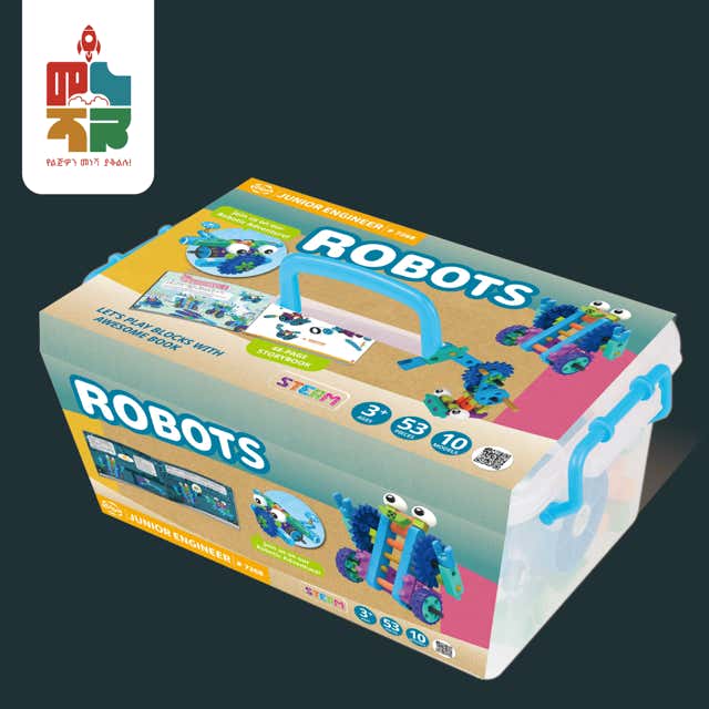 ልጆች የተለያዩ ሮቦቶችን በብሎክ ይስሩ