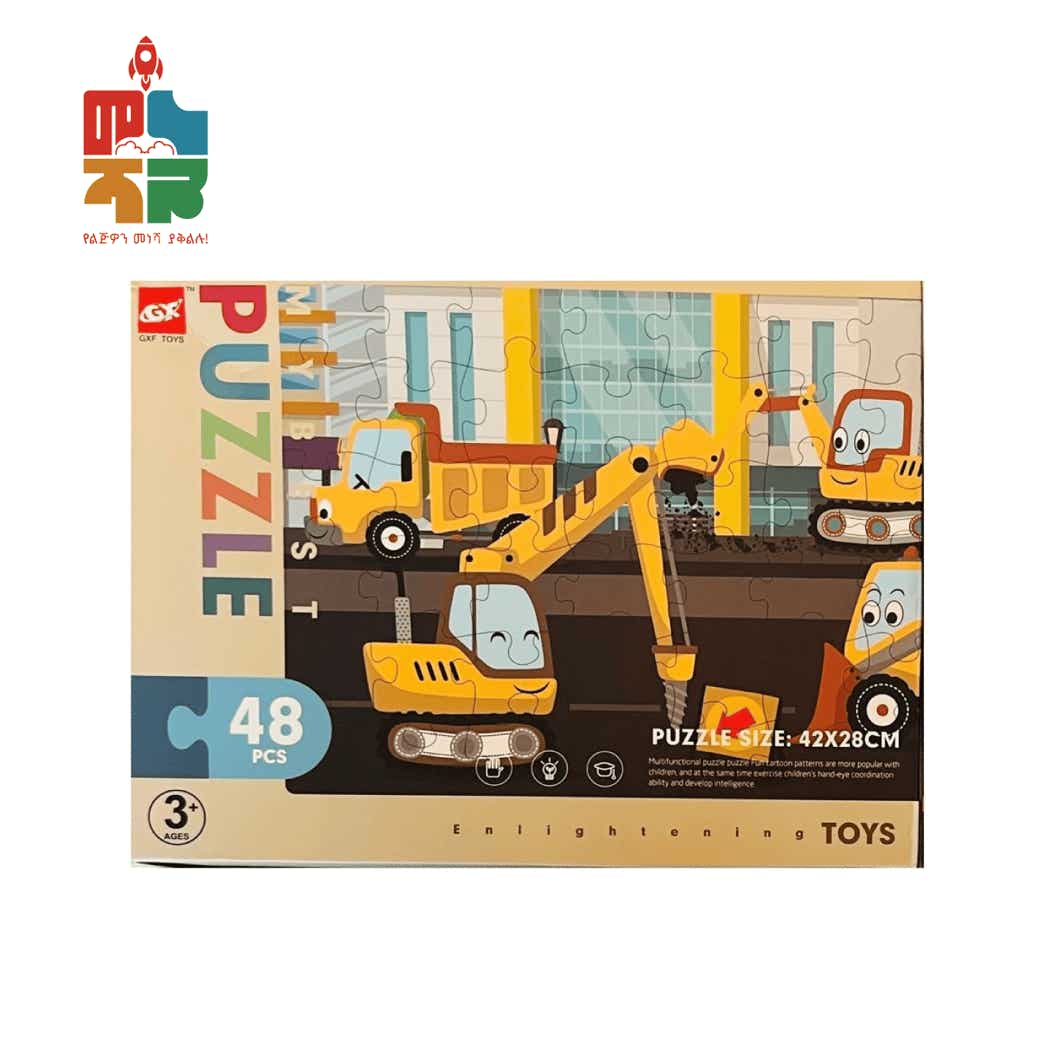 የኮንስትራክሽን መኪና መጫወቻና ፐዝል አንድ ላይ
